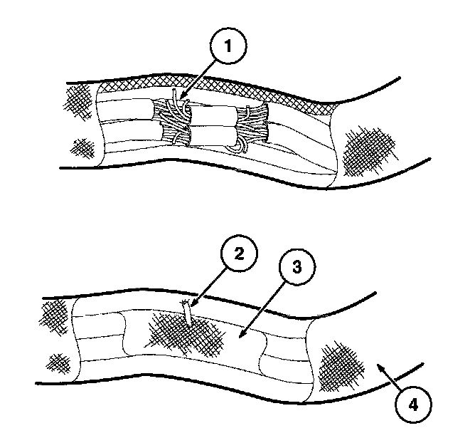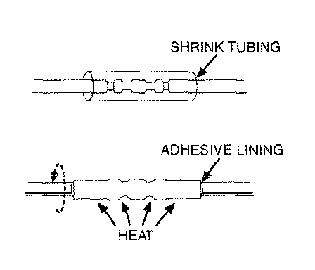 13. Use shielded heat gun to heat the repaired area until adhesive flows out of both ends of the heat shrink tubing.