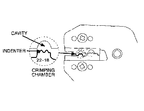 6. Center one end of the wire splice in the appropriate crimping chamber.