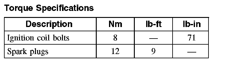 Torque Specifications:
