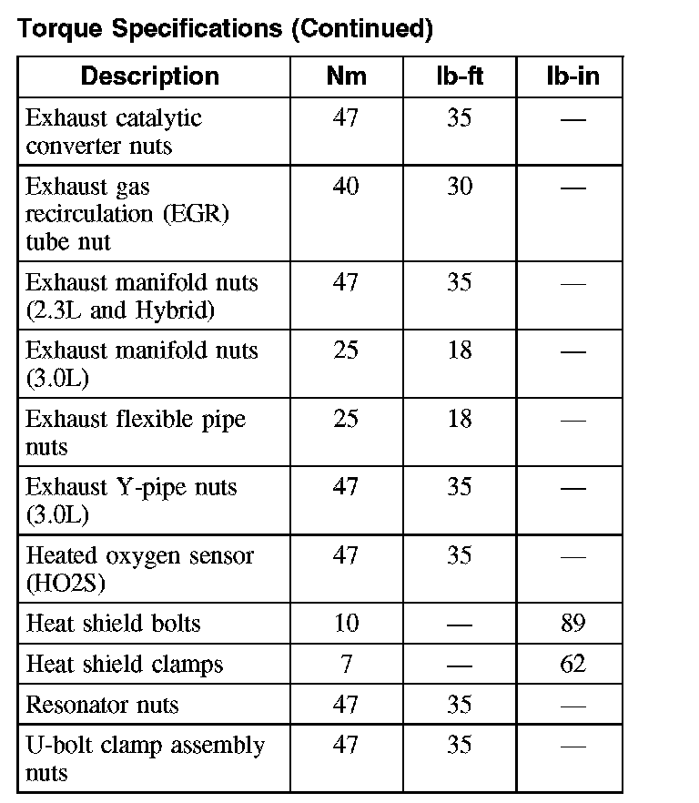 Torque Specifications (Part 2):