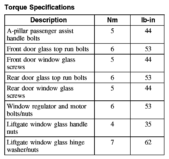 Torque Specifications: