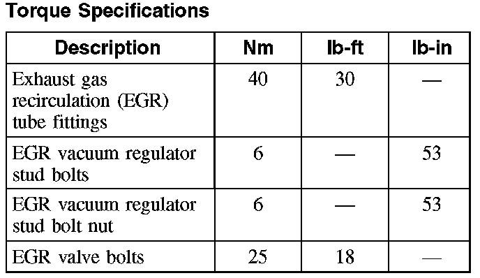 Torque Specifications: