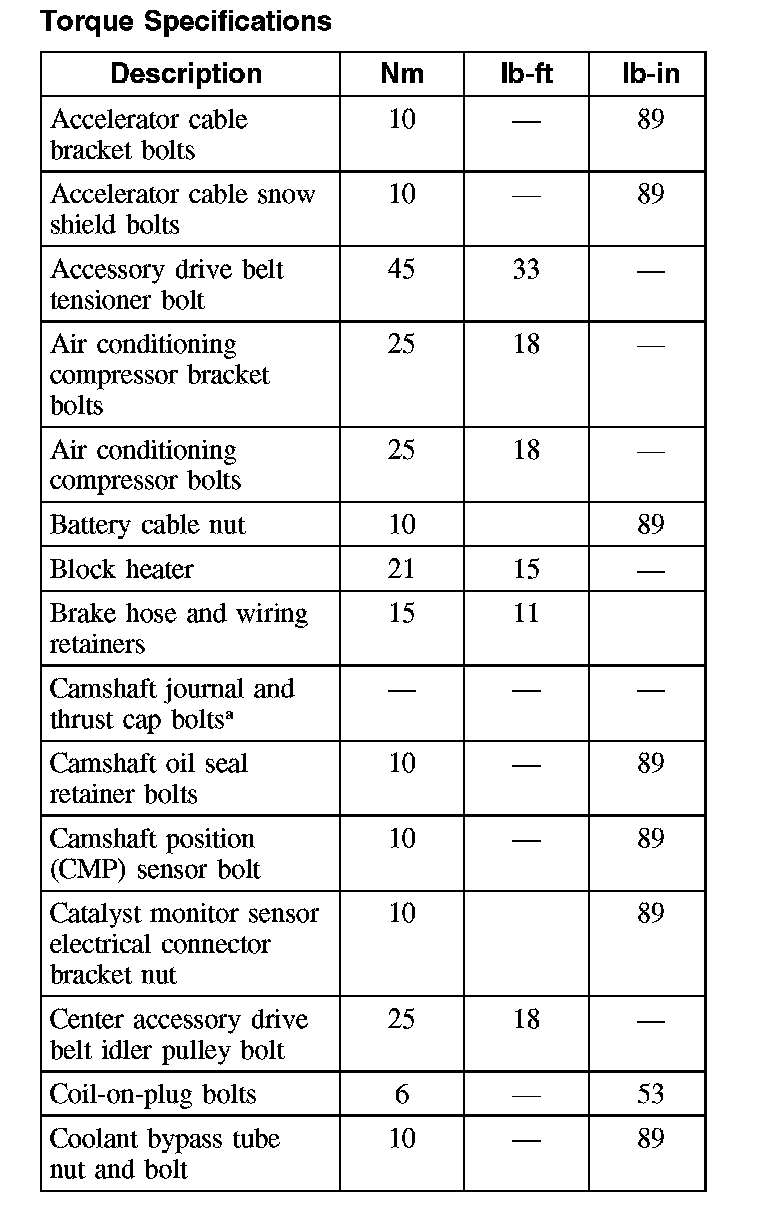 Torque Specifications (Part 1):