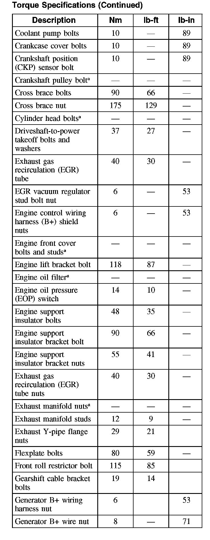 Torque Specifications (Part 2):