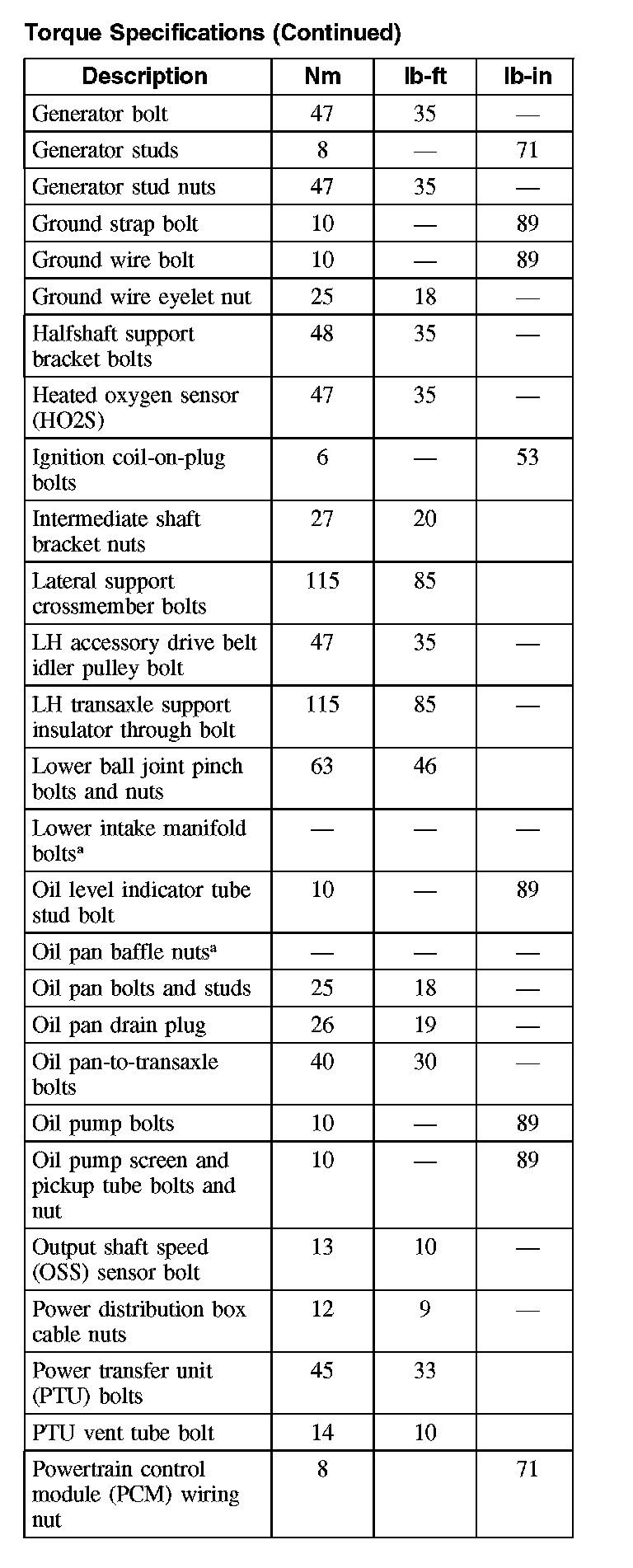Torque Specifications (Part 4):