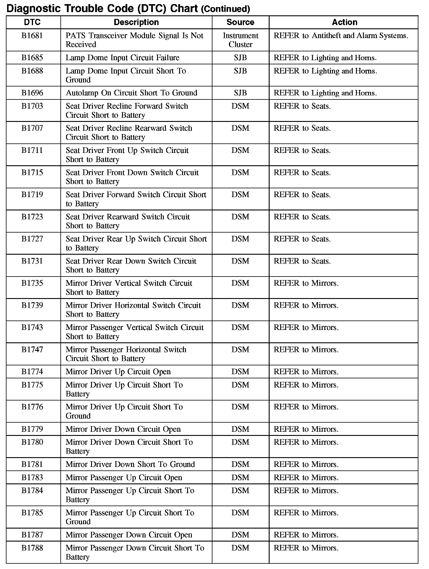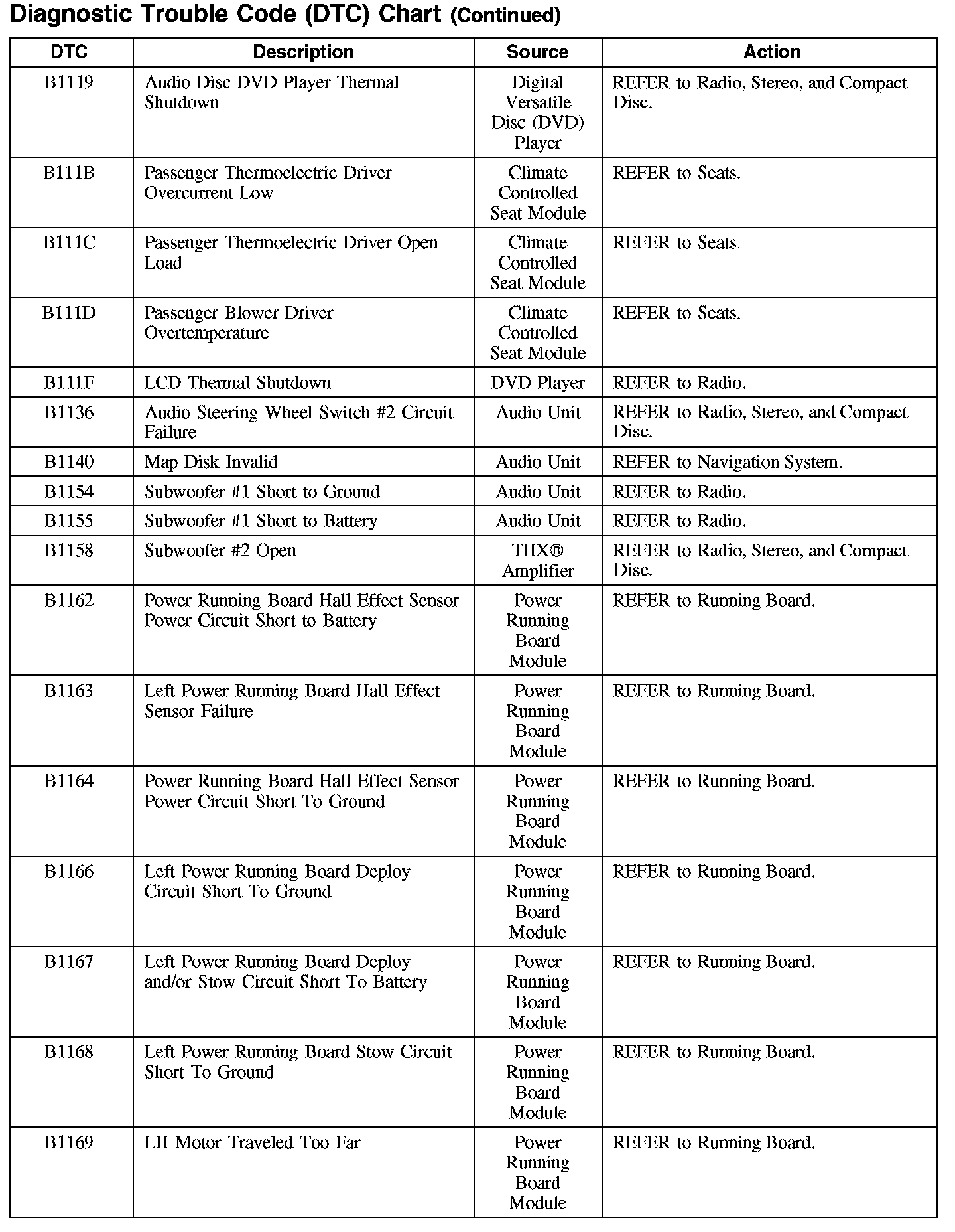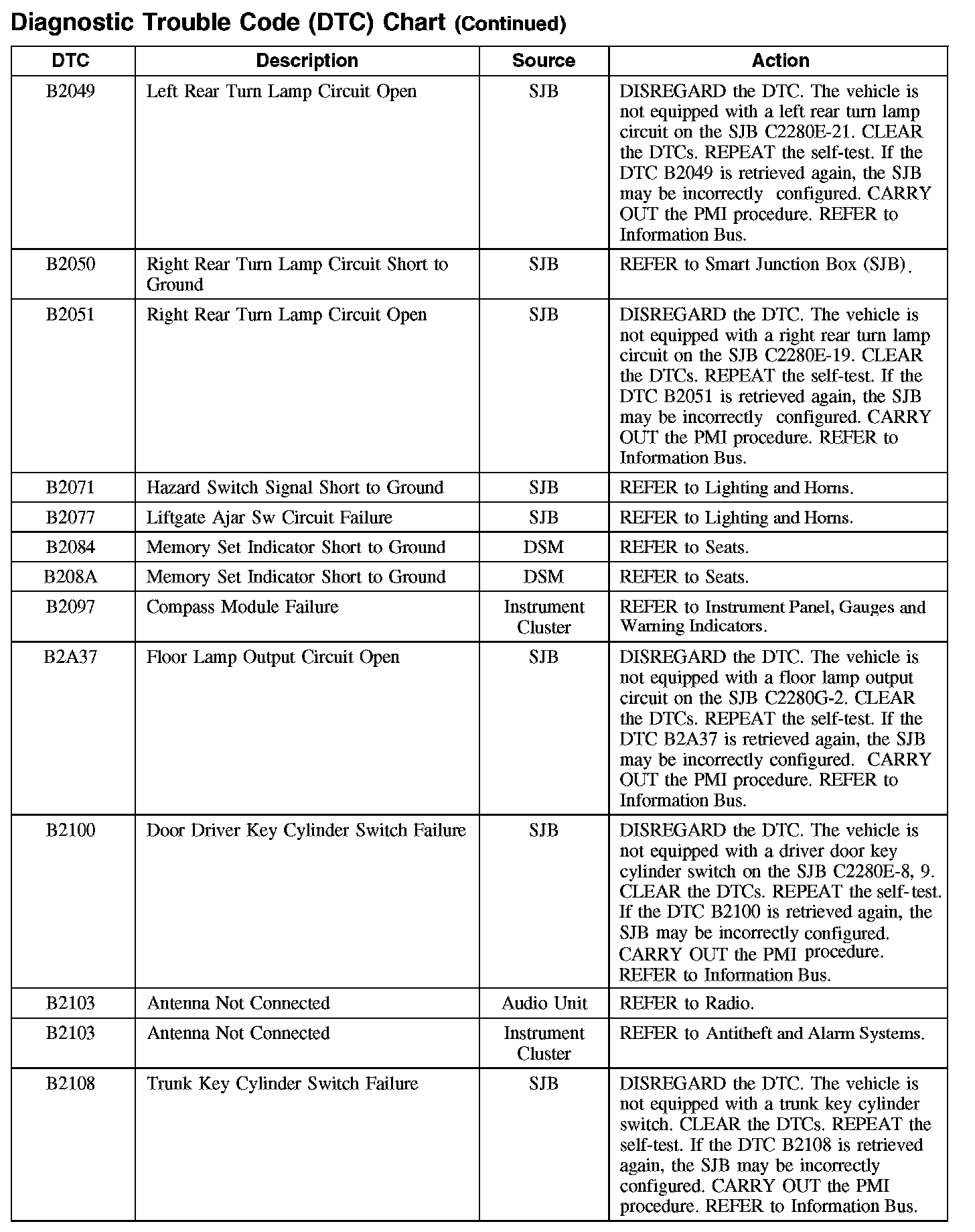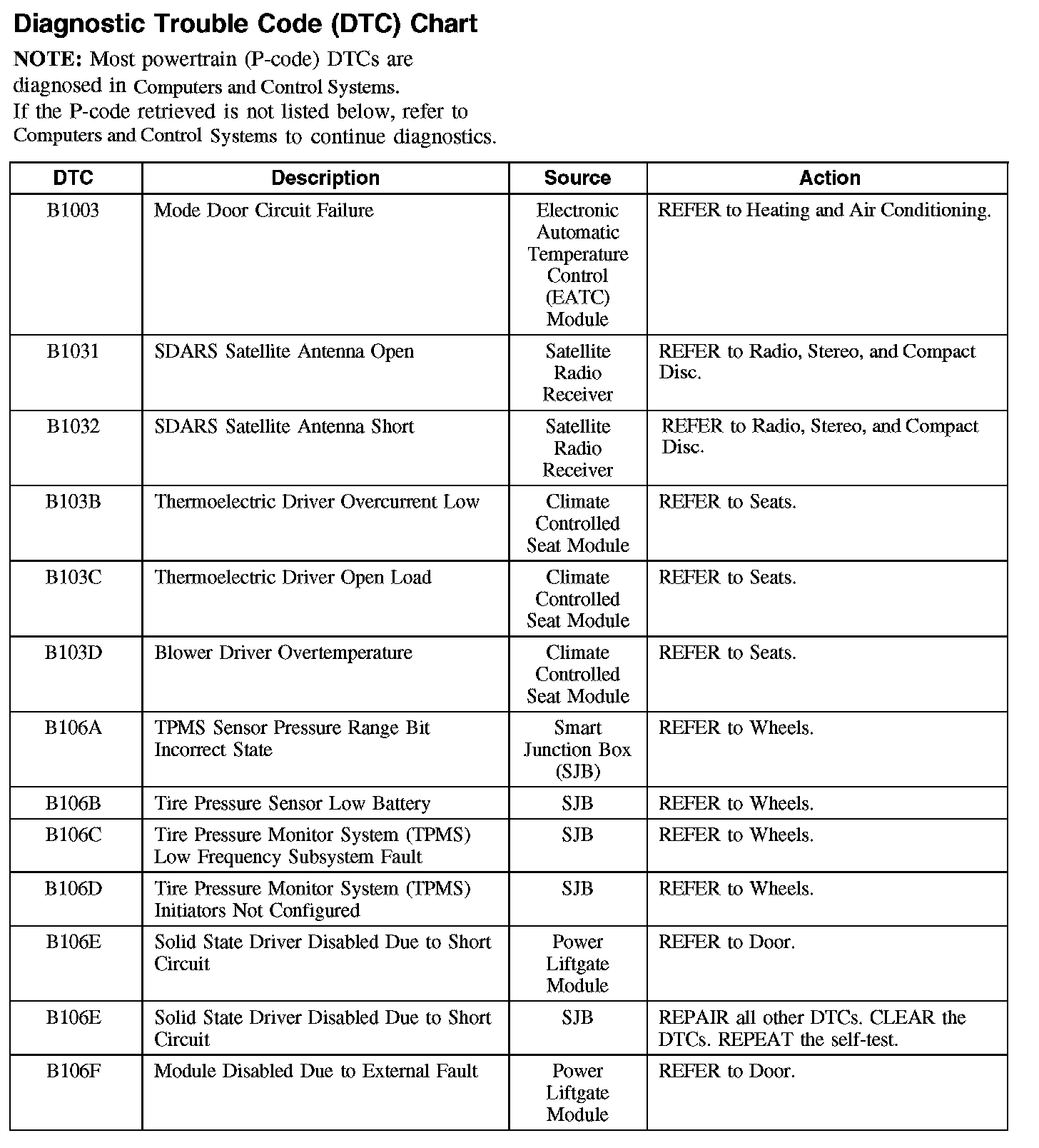 DIAGNOSTIC TROUBLE CODE (DTC) CHARTB1003-B106F: