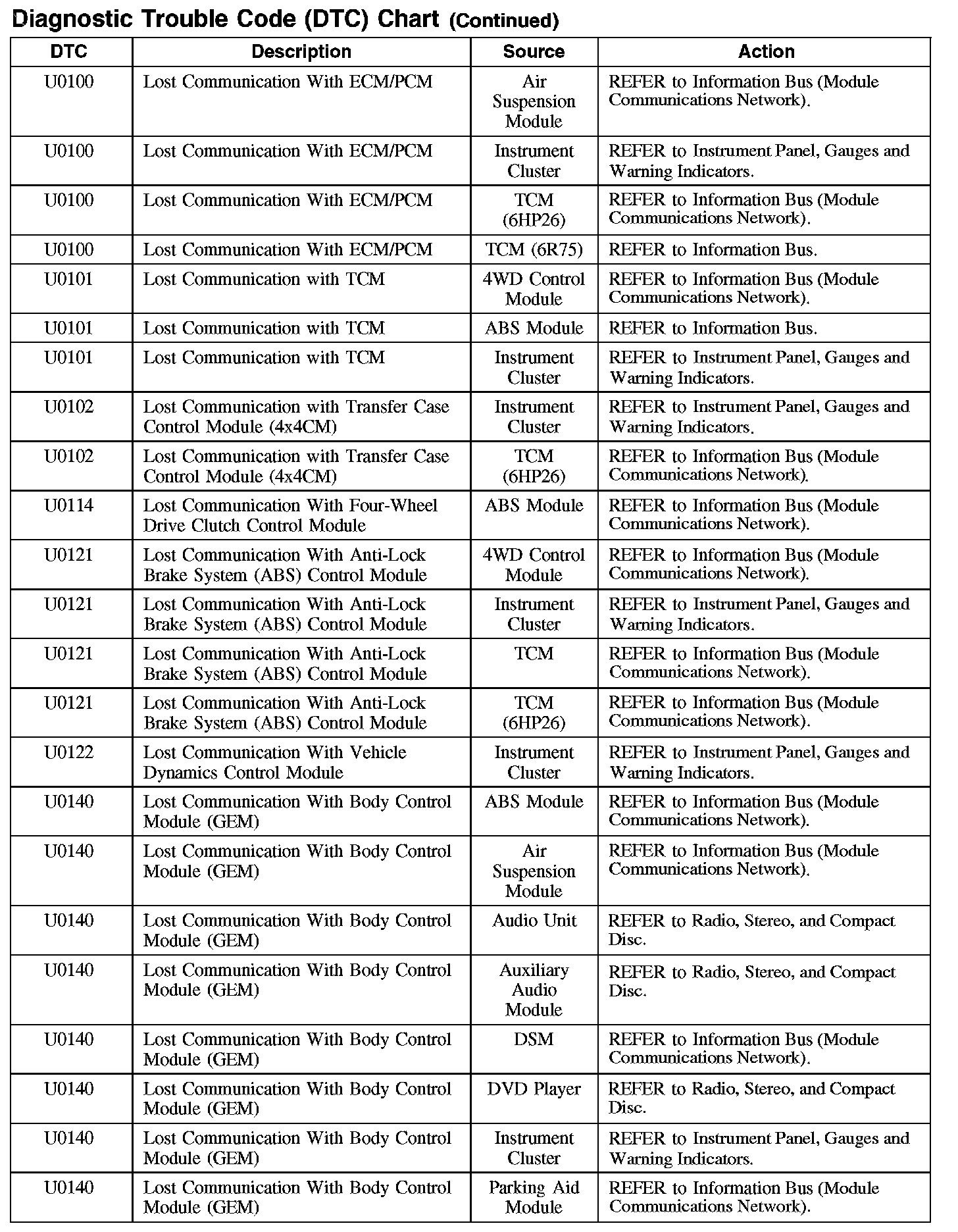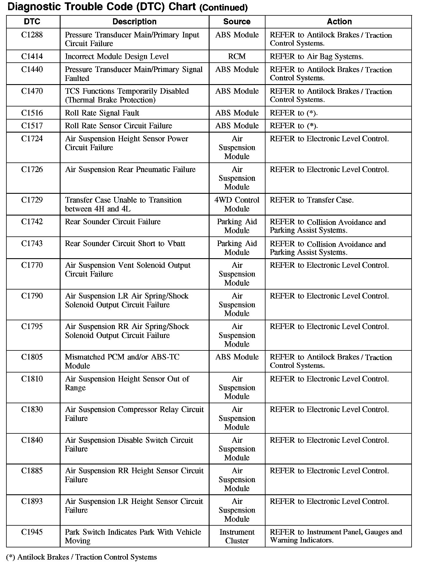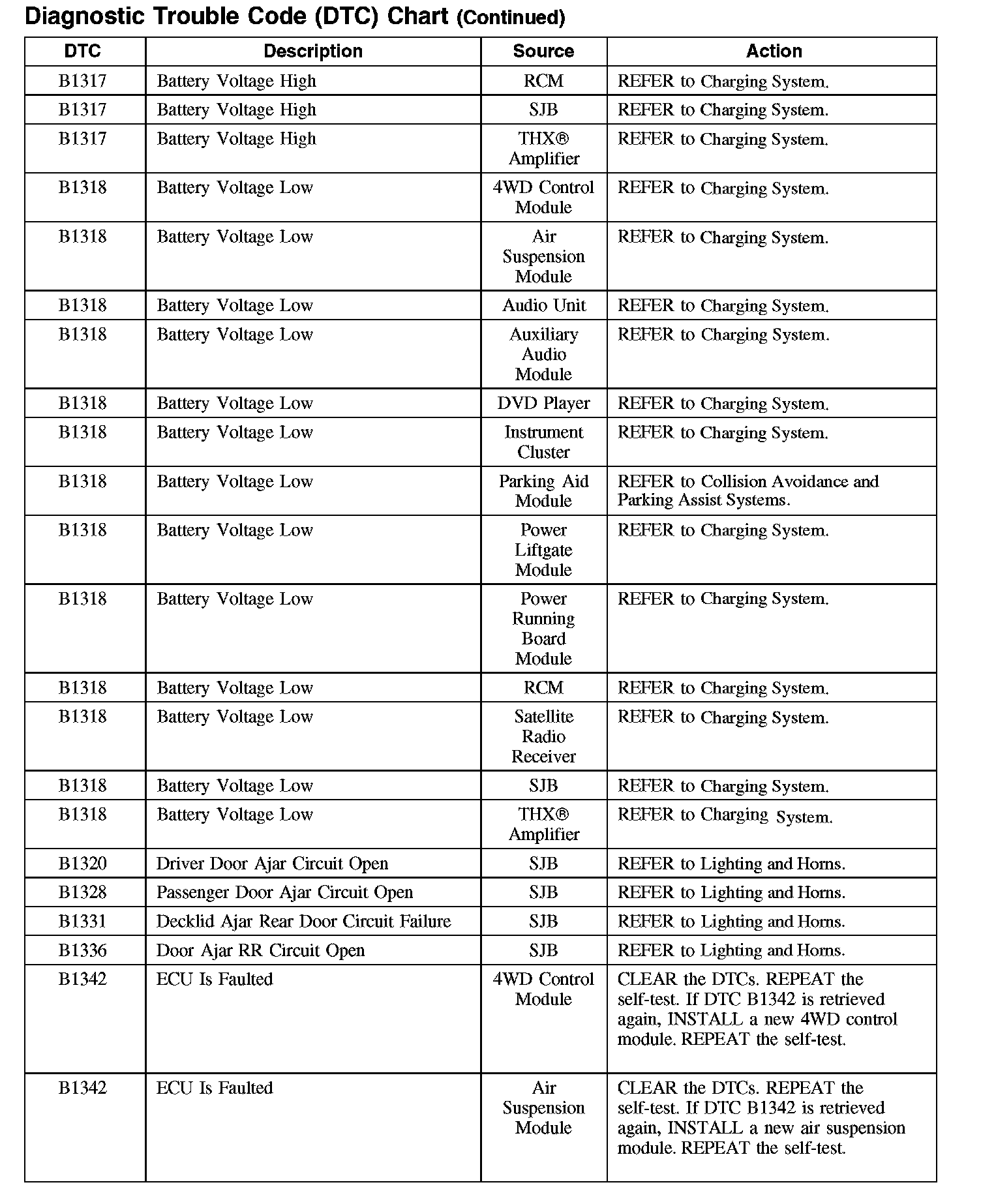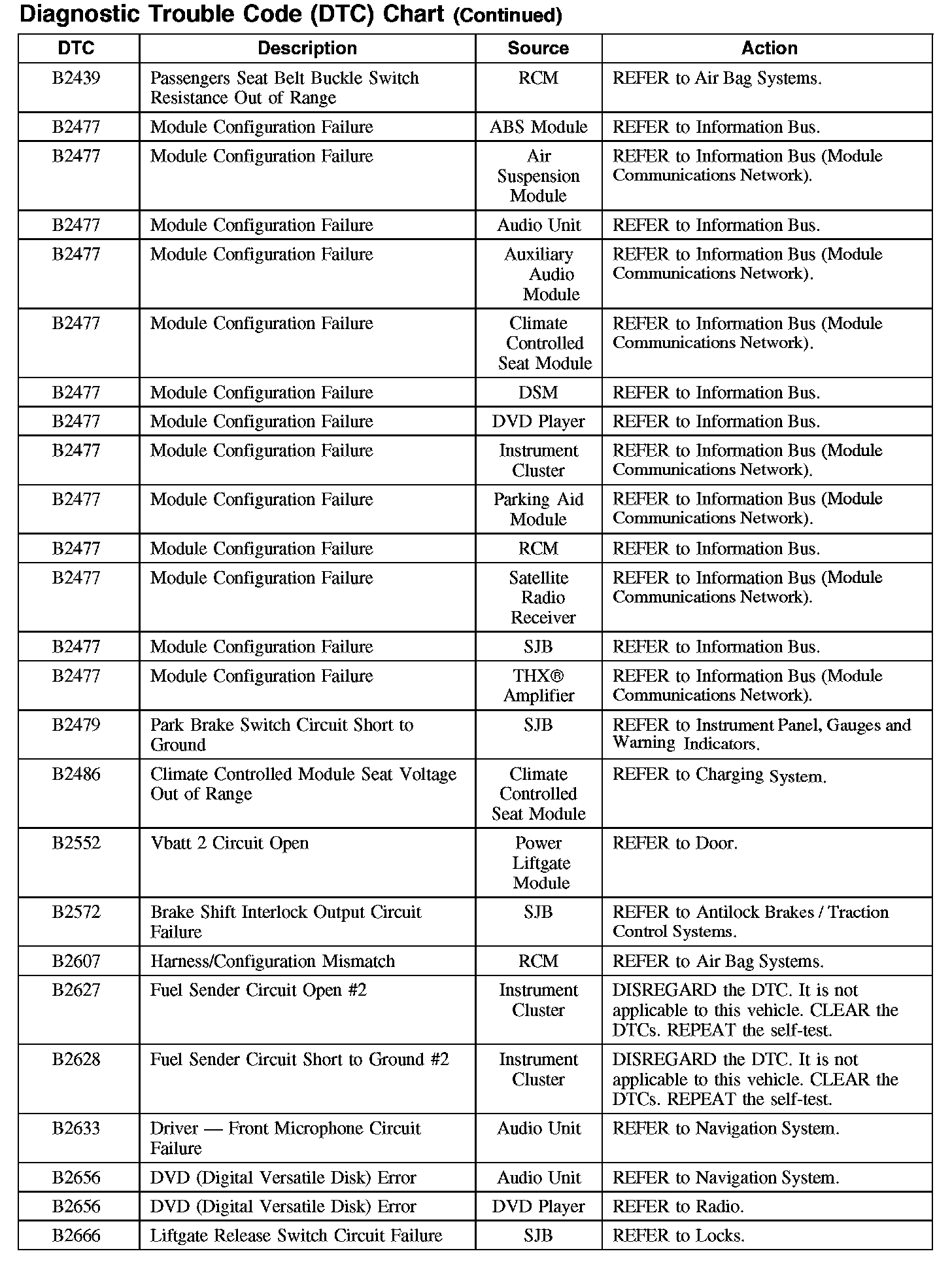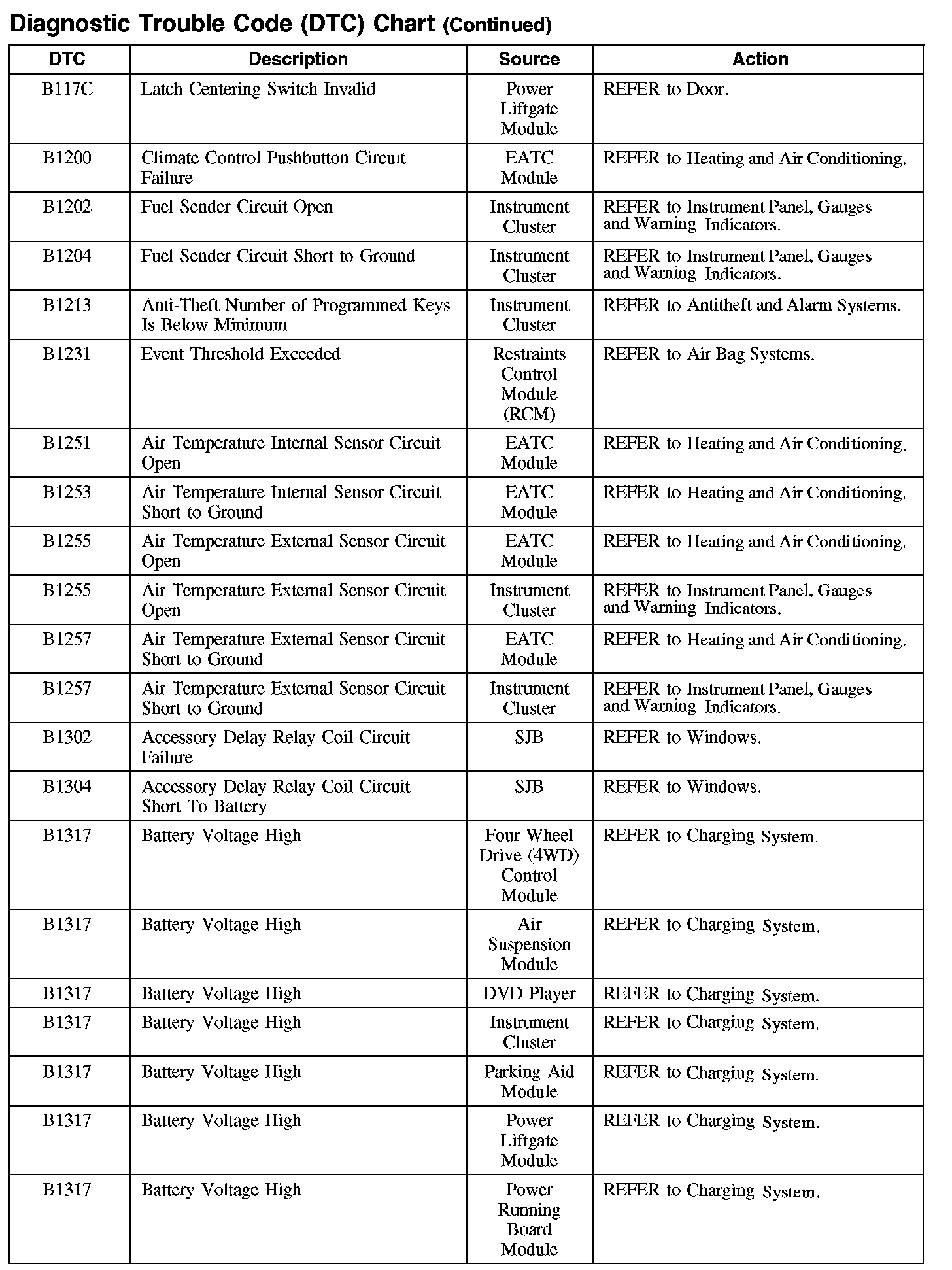 DIAGNOSTIC TROUBLE CODE (DTC) CHARTB1003-B106F: