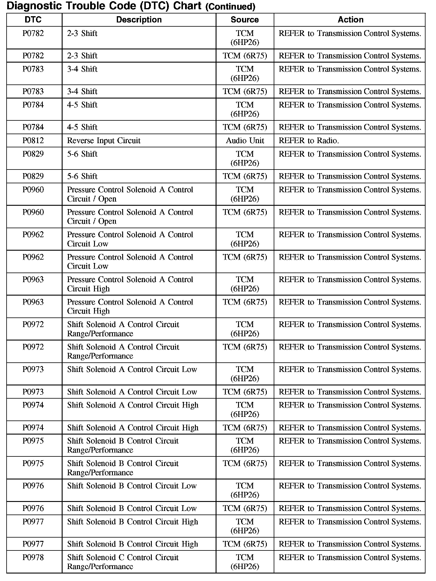 Diagnostic Trouble Code Descriptions