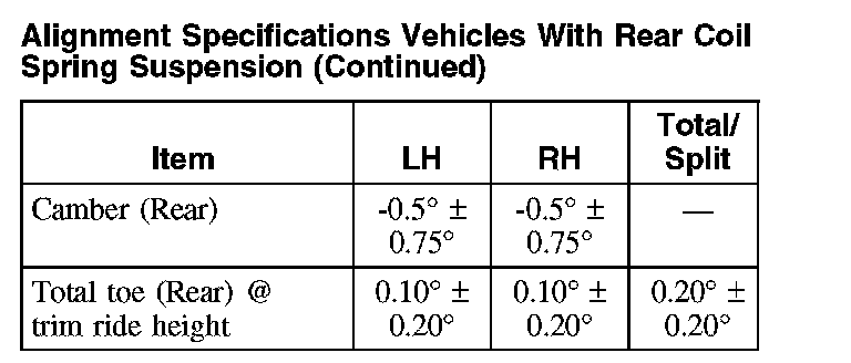 Alignment Specifications Vehicles With Rear Coil Spring Suspension: