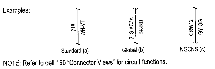 Ford Motor Company uses three different circuit numbering conventions: Standard Circuit Numbering System, Global Circuit Numbering System; and New Global Circuit Numbering System (NGCNS). With each, the circuit number (which identifies a specific circuit function) is followed by the wire color.