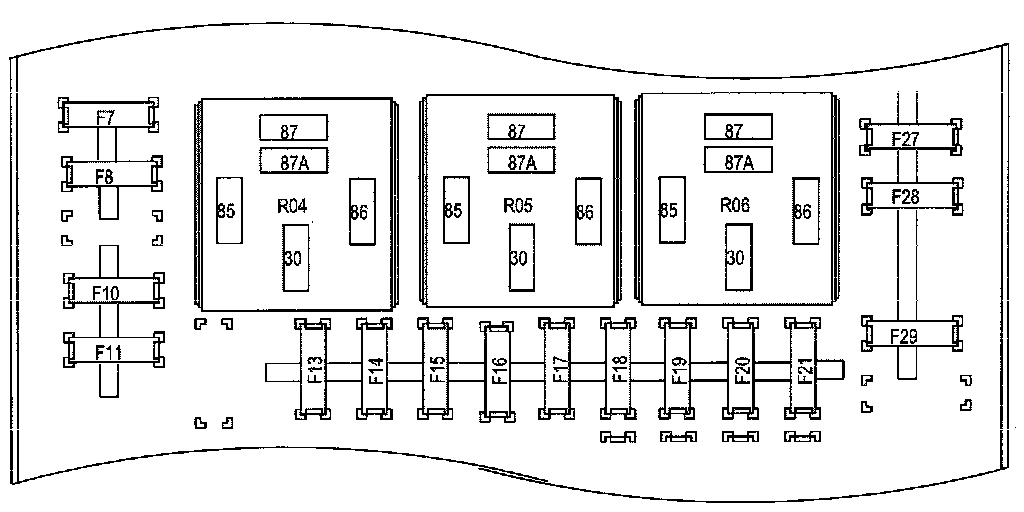 Fuse and Relay Information contains a view of the fuse/relay box in which fuses and relays are identified, numbered and named. Fuse and relay numbering and naming follow the indication of the fuse panel cover. In addition, for all removable relays, pin positions are added to illustrate proper orientation.