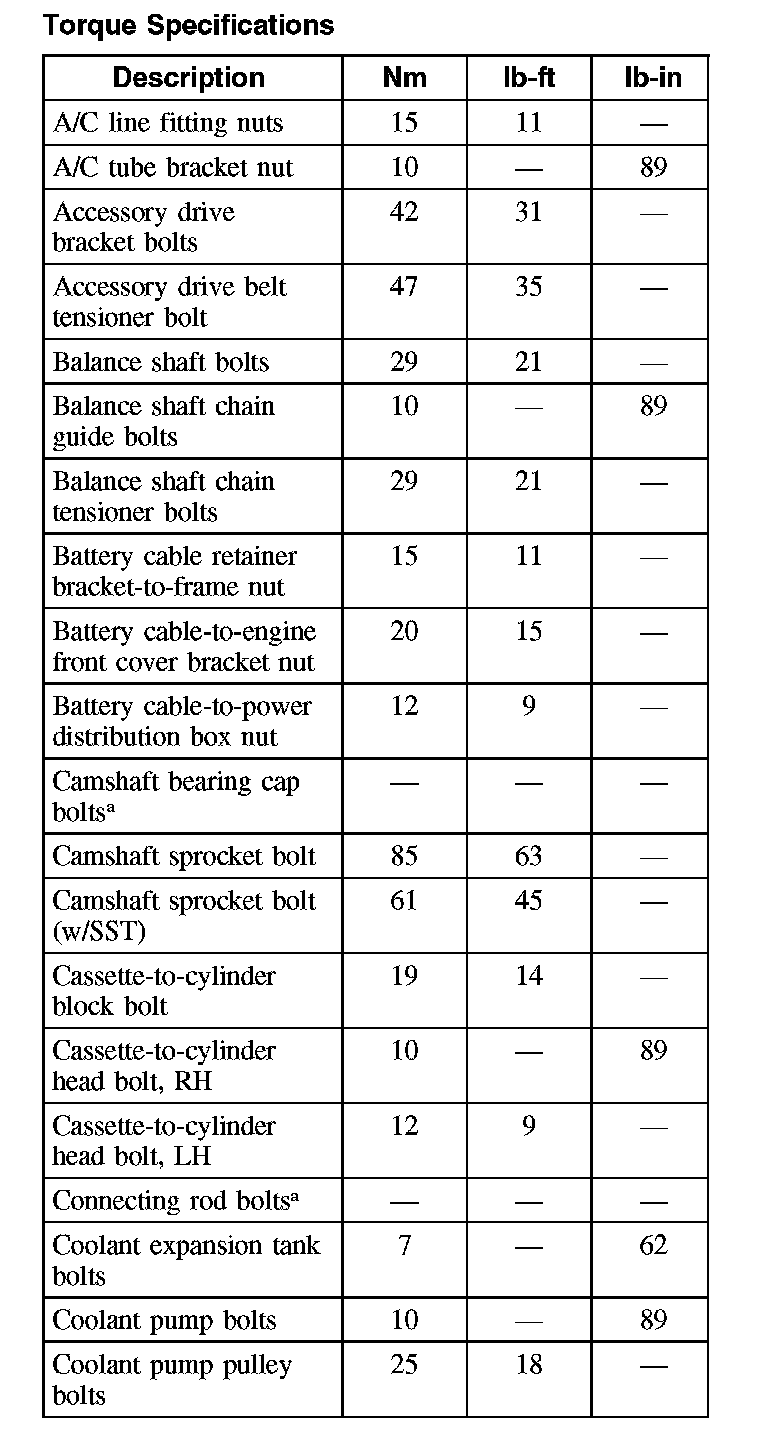Torque Specifications: