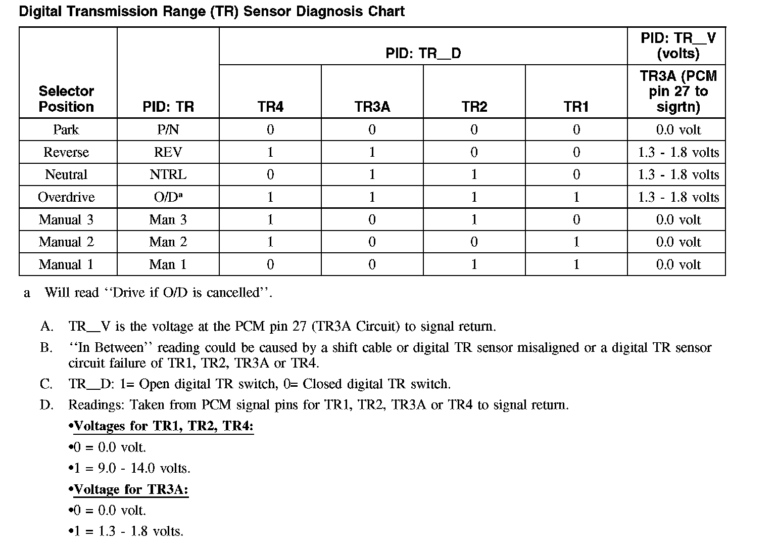 Digital Transmission Range (TR) Sensor Diagnosis Chart: