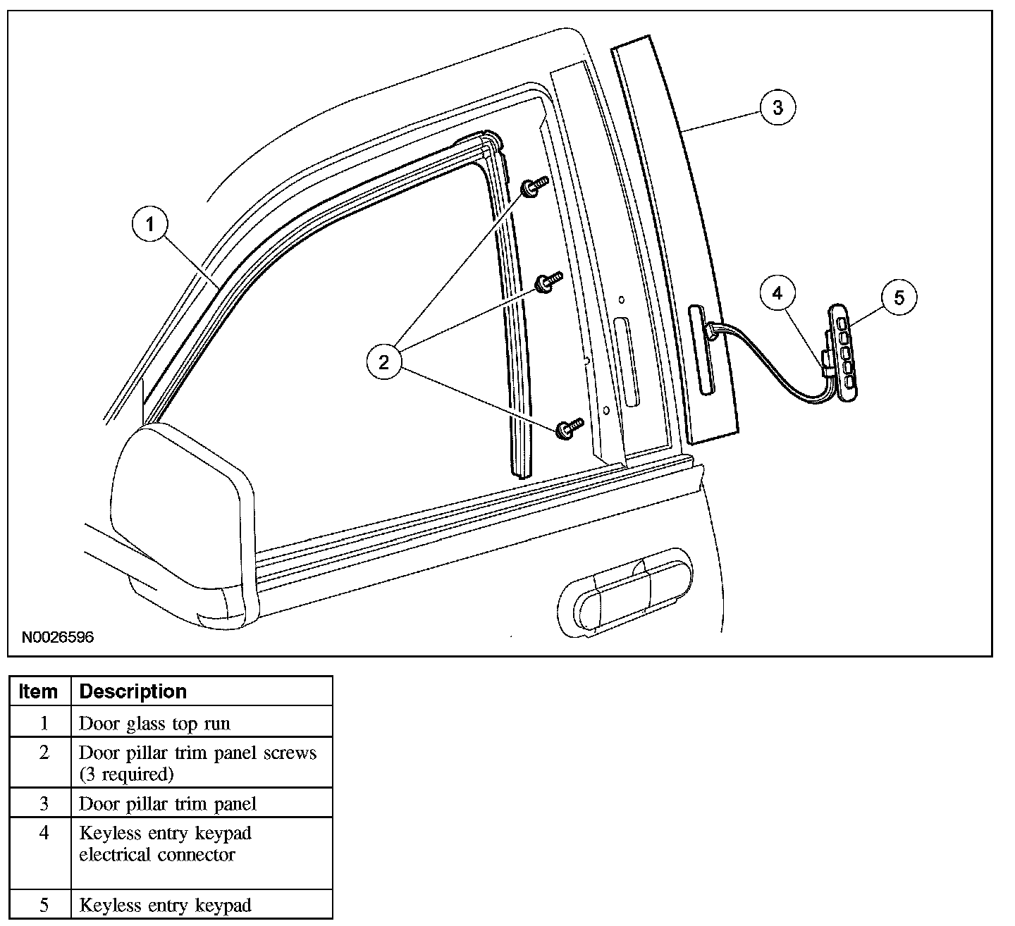 Home >> Ford >> 2007 >> Explorer 2WD V8-4.6L VIN 8 >> Repair and Diagnosis >> Body and Frame >> Locks >> Keyless Entry >> Keyless Entry Key-Pad >> Service and Repair