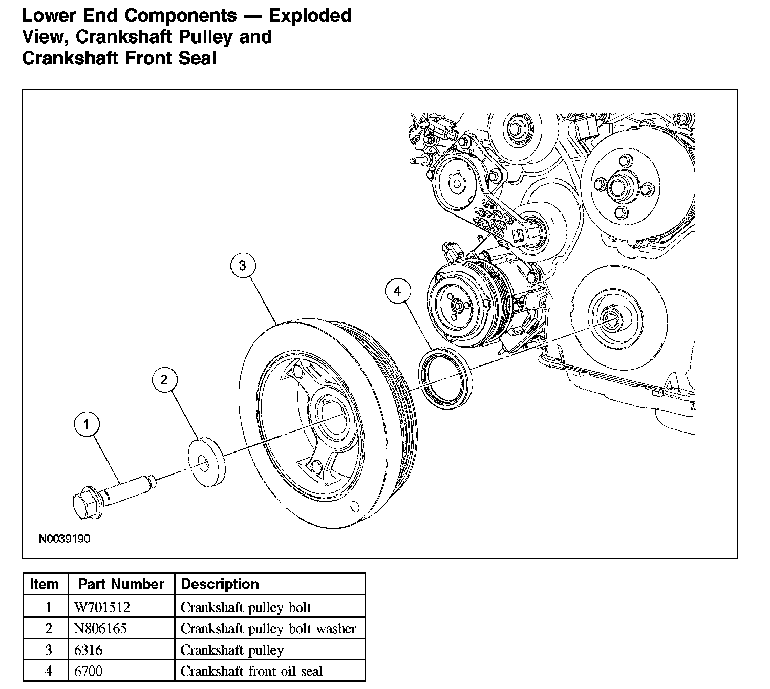 Lower End Components - Exploded View, Crankshaft Pulley and Crankshaft Front Seal
