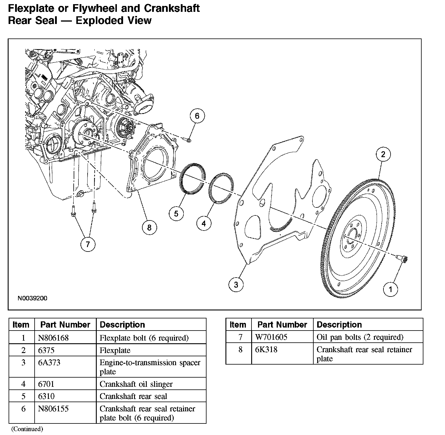 Flexplate or Flywheel and Crankshaft Rear Seal - Exploded View: