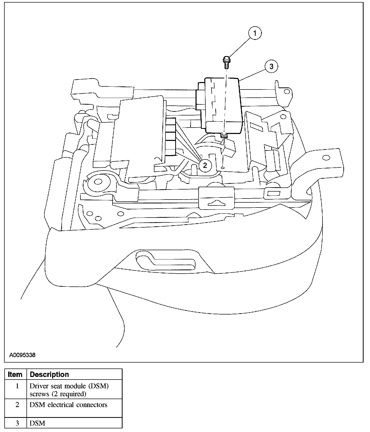 Home >> Ford >> 2007 >> Explorer 2WD V8-4.6L VIN 8 >> Repair and Diagnosis >> Powertrain Management >> Computers and Control Systems >> Body Control Module >> Service and Repair >> Driver Seat Module (DSM)