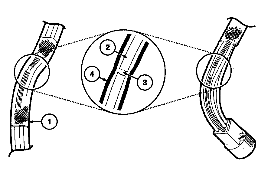 The illustrations are known examples of wiring harness, splices and connectors that will create intermittent electrical concerns. The concerns are hidden and can only be discovered by a physical evaluation as shown in each illustration.