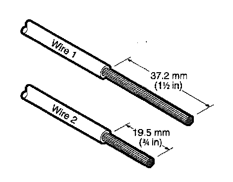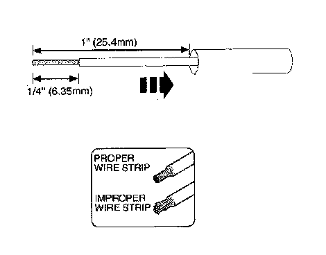 2. Strip 1/4" (6.35mm) of insulation from each wire end, taking care not to nick or cut wire strands.
