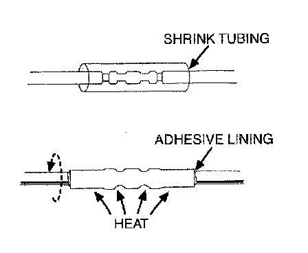 13. Use shielded heat gun to heat the repaired area until adhesive flows out of both ends of the heat shrink tubing.