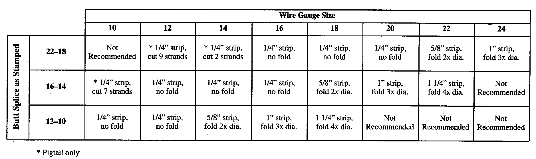 Recommended splicing method - Crimp (For 10-22 AWG Diameter Wire to Like Wire Diameter)