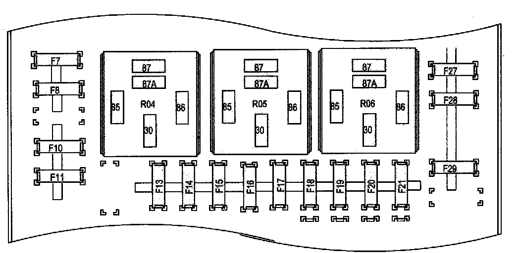 Fuse and Relay Information contains a view of the fuse/relay box in which fuses and relays are identified, numbered and named. Fuse and relay numbering and naming follow the indication of the fuse panel cover. In addition, for all removable relays, pin positions are added to illustrate proper orientation.
