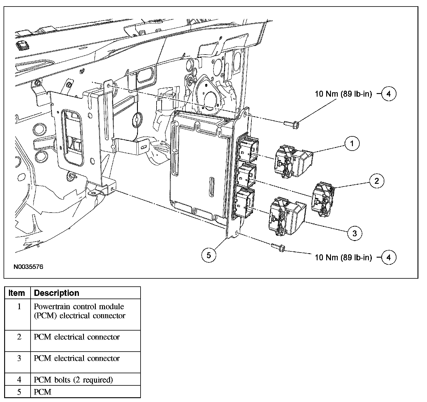 1. Install the PCM and bolts.