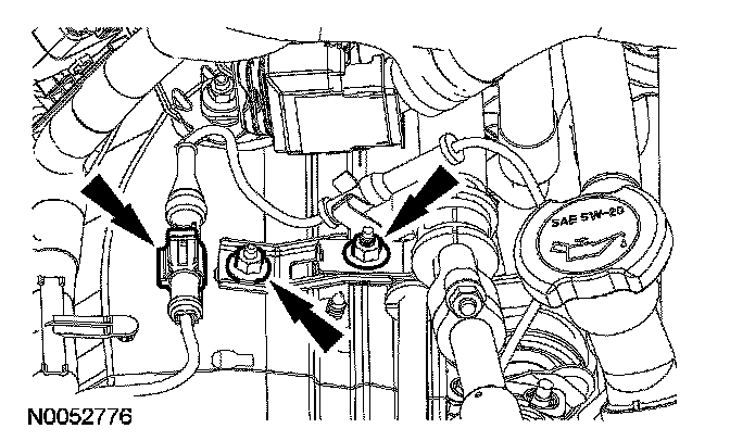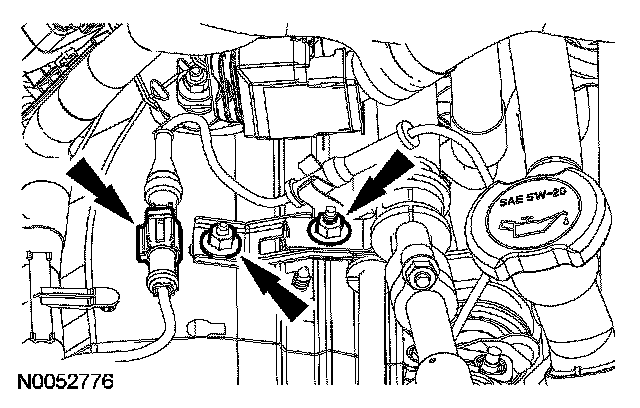 3. Position the wiring harness and the A/C tube brackets and install the nuts. Connect the RH front wheel speed sensor electrical connector.