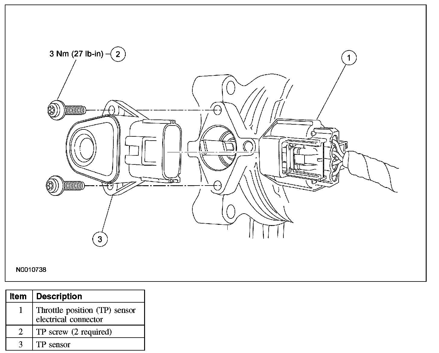 NOTE: When installing the new TP sensor, make sure that the radial locator tab on the TP sensor is aligned with the radial locator hole on the throttle body.