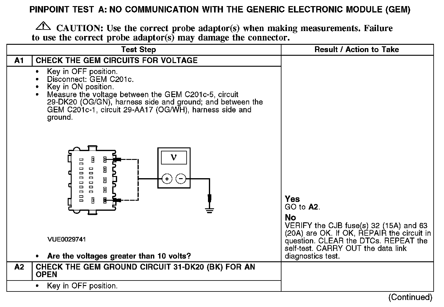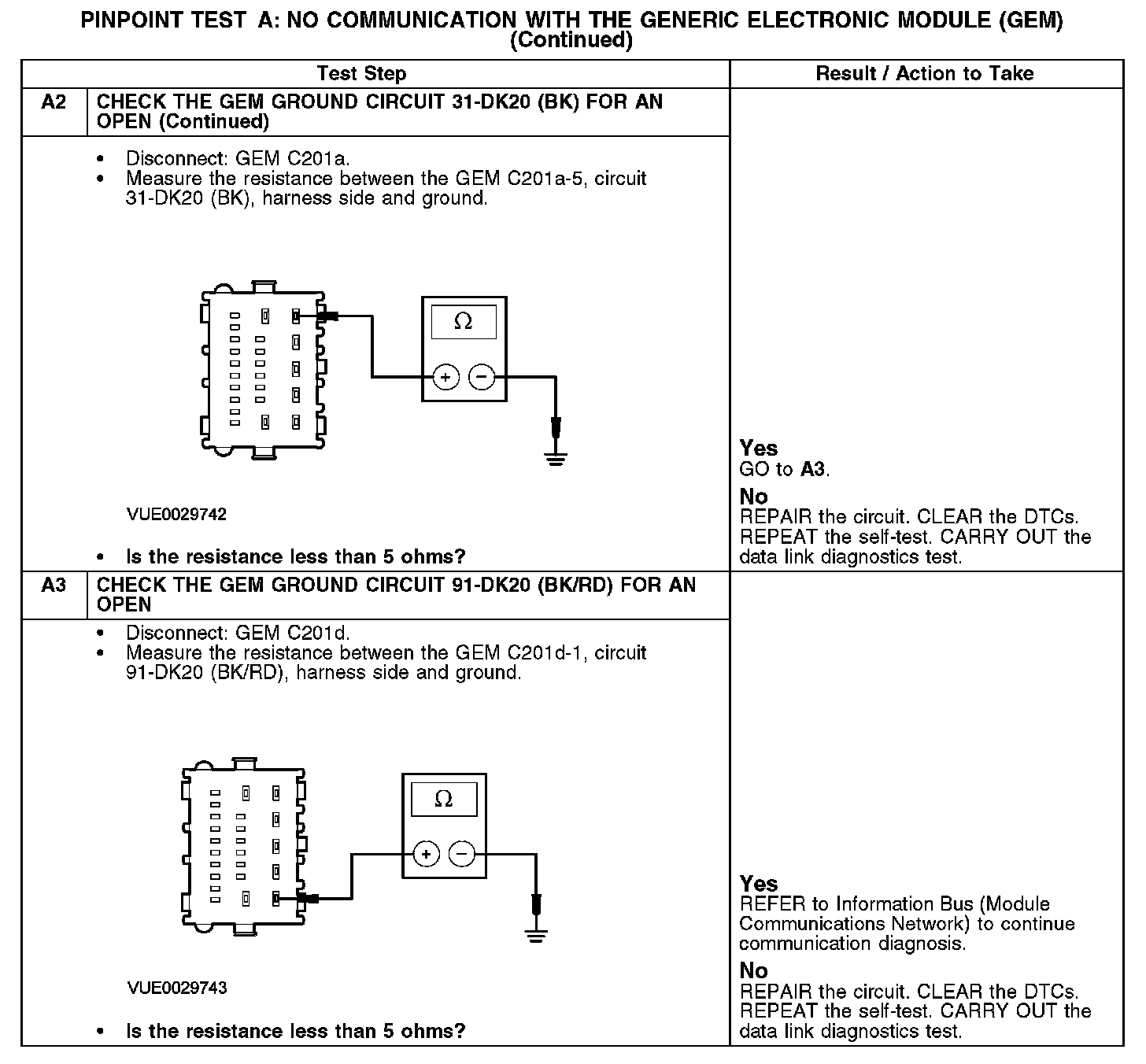 PINPOINT TEST A: NO COMMUNICATION WITH THE GENERIC ELECTRONIC MODULE (GEM)
