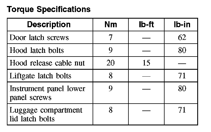 Torque Specifications: