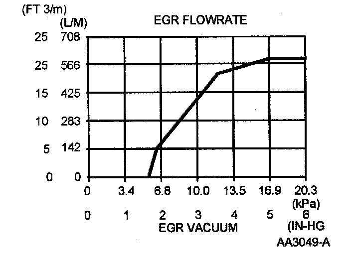 The EGR valve in the differential pressure feedback EGR system is a conventional, vacuum-actuated. The valve increases or decreases the flow of EGR. As vacuum applied to the EGR valve diaphragm overcomes the spring force, the valve begins to open. As the vacuum signal weakens, at 5.4 kPa (1.6 in-Hg) or less, the spring force closes the valve. The EGR valve is fully open at about 15 kPa (4.5 in-Hg).