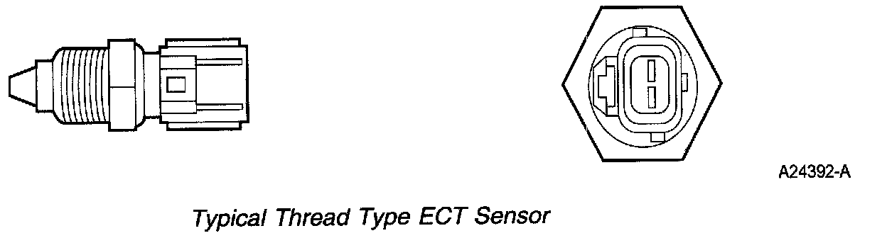 The ECT measures the temperature of the engine coolant. The PCM uses the ECT input for fuel control and for cooling fan control. There are 3 types of ECT sensors, threaded, push-in, and twist-lock. The ECT sensor is located in an engine coolant passage.