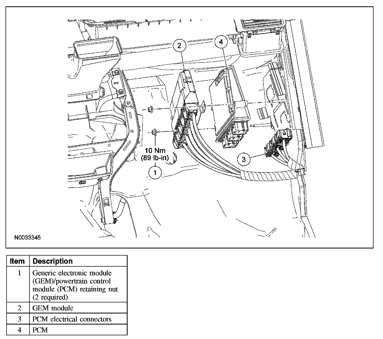 1. Install the PCM and connect the electrical connectors.