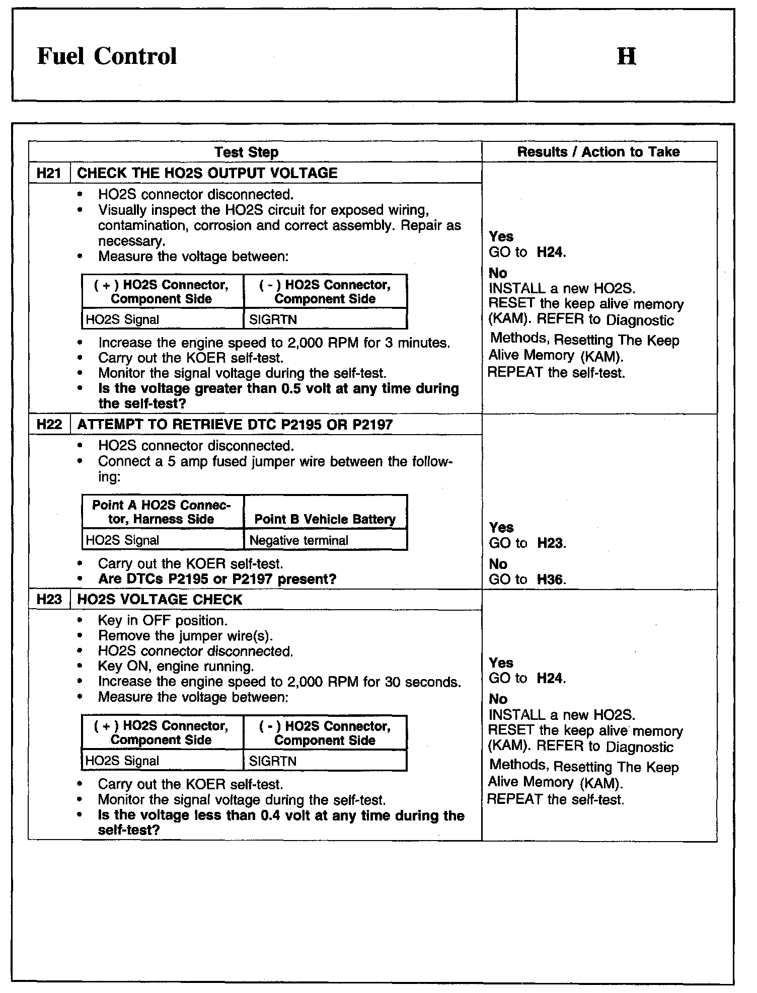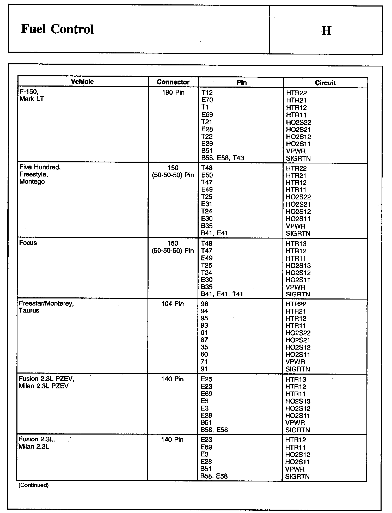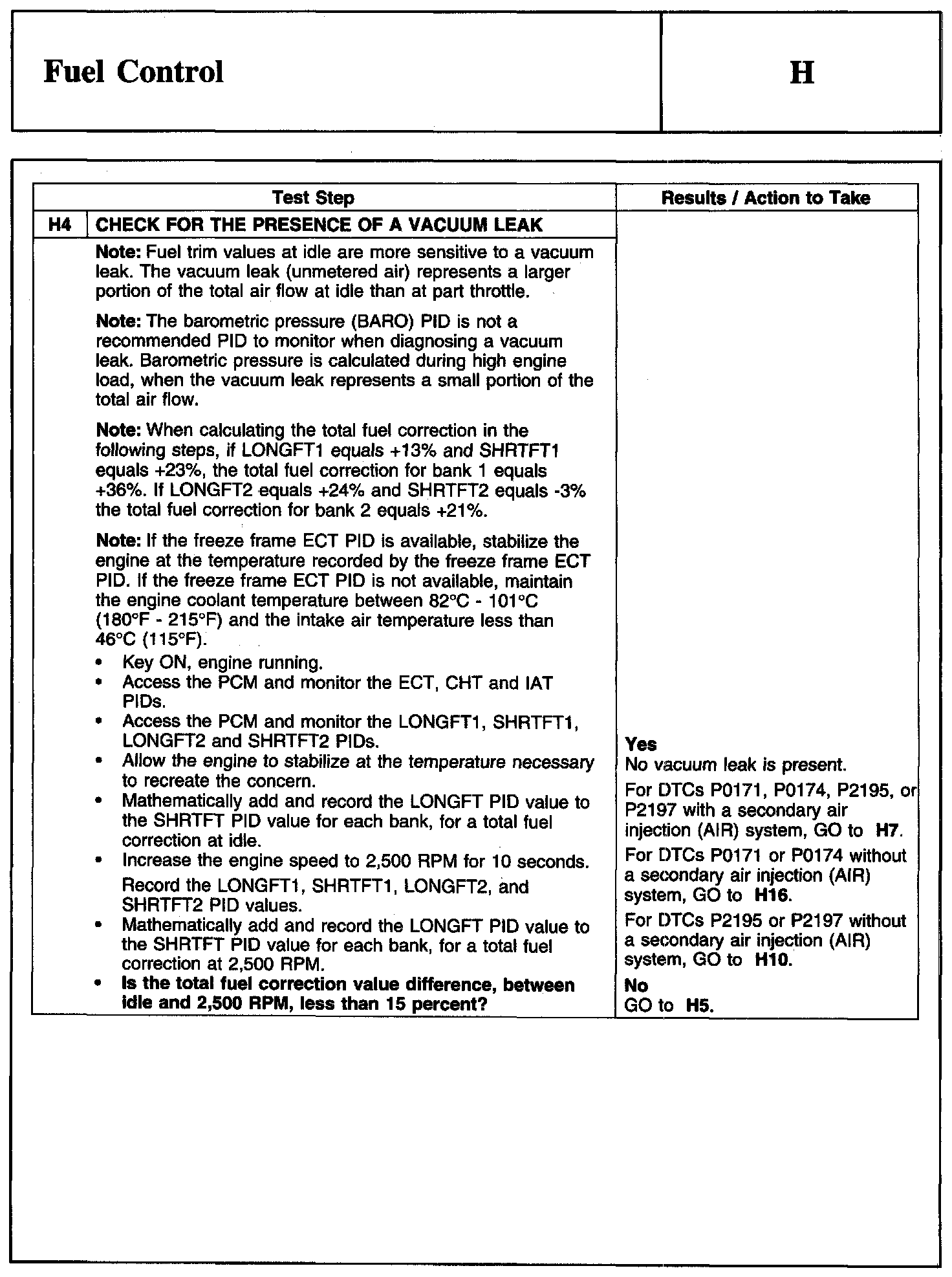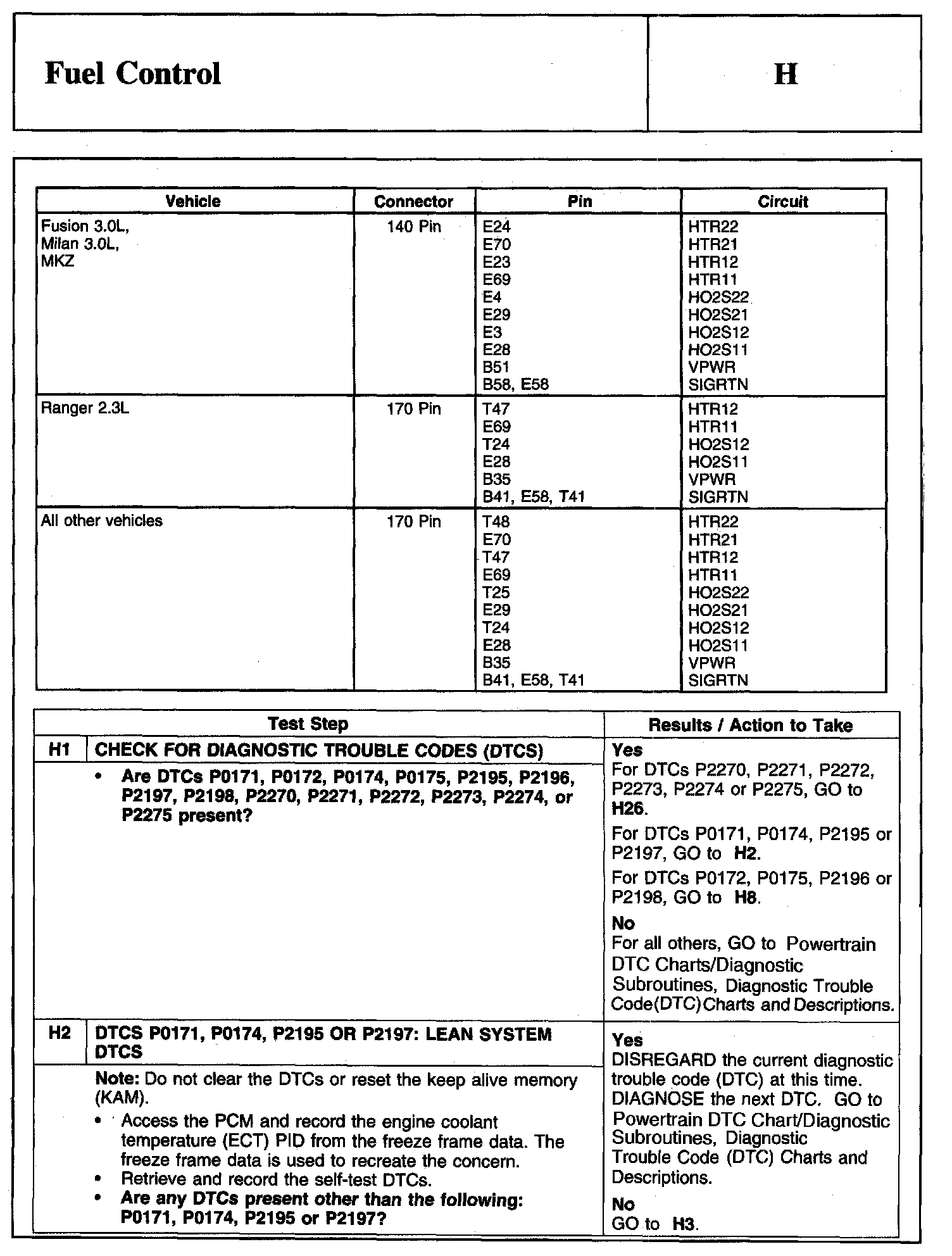PINPOINT TEST H: FUEL CONTROLWarning And Schematic: