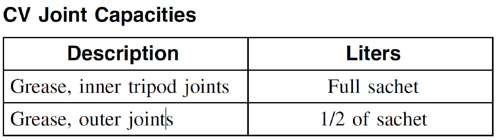 Capacity Specifications