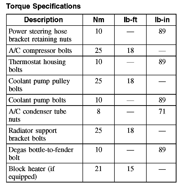Torque Specifications: