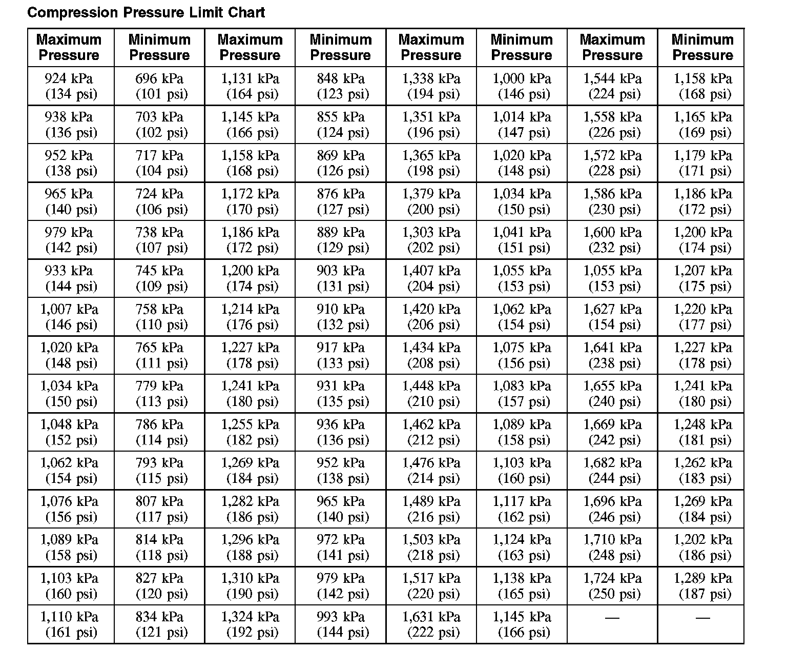 Compression Pressure Limit Chart: