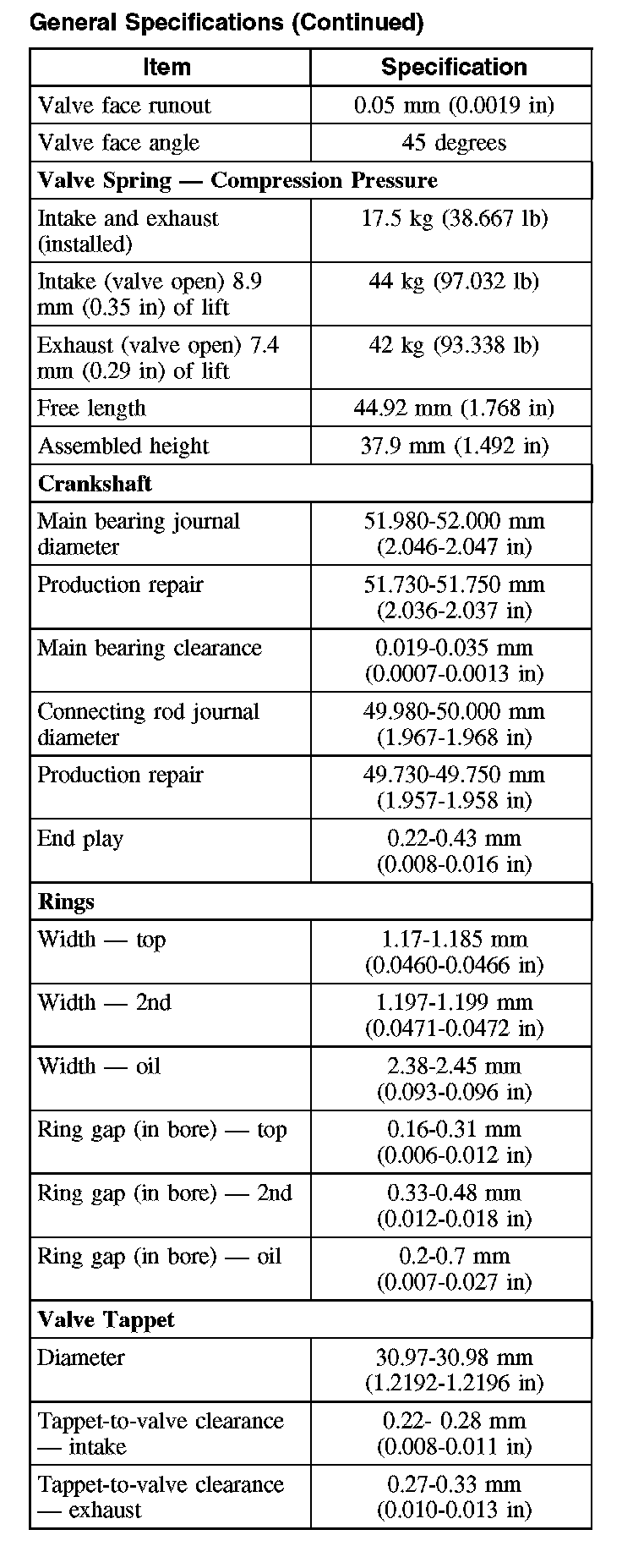 General Specifications