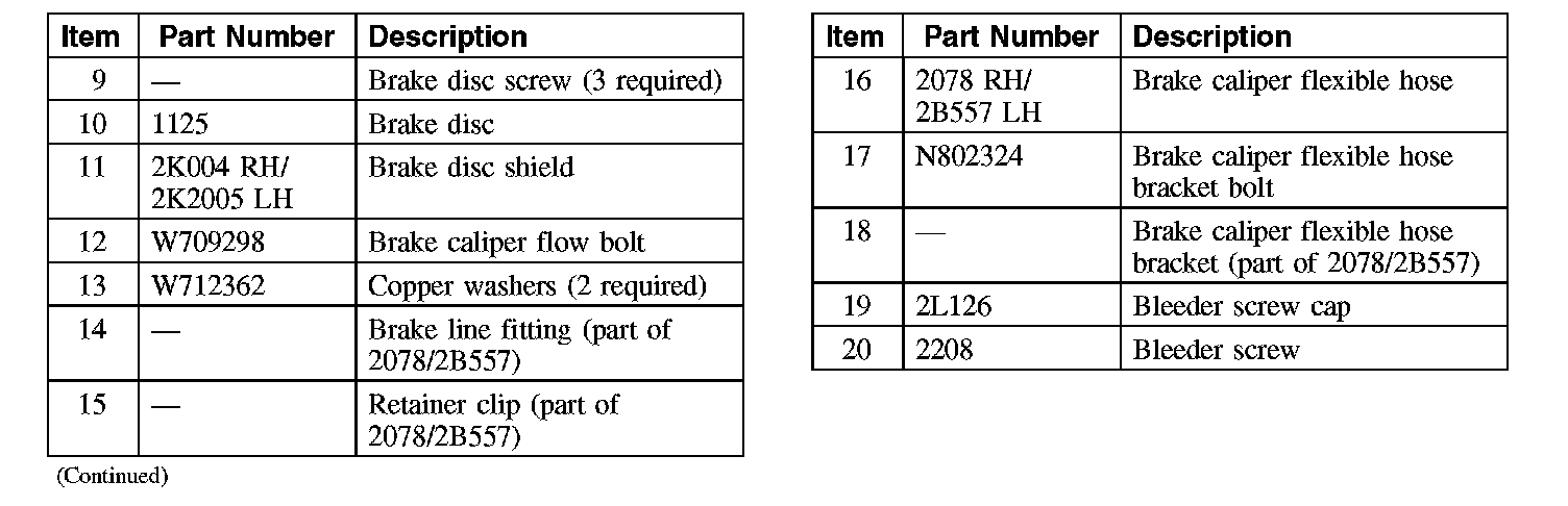 Disc Brake System - Exploded View (Part 2):