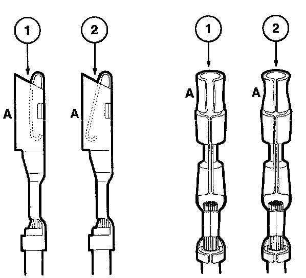 Any probe entering the terminal may enlarge the contact spring opening creating an intermittent signal. Insert the correct mating terminal (Location A) from the service kit and feel for a loose fit.