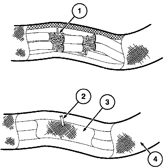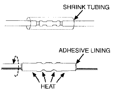 13. Use shielded heat gun to heat the repaired area until adhesive flows out of both ends of the heat shrink tubing.