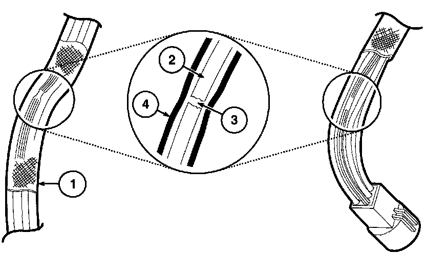 The illustrations are known examples of wiring harness, splices and connectors that will create intermittent electrical concerns. The concerns are hidden and can only be discovered by a physical evaluation as shown in each illustration.