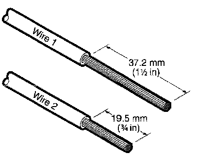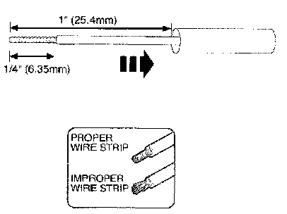 2. Strip 1/4" (6.35mm) of insulation from each wire end, taking care not to nick or cut wire strands.