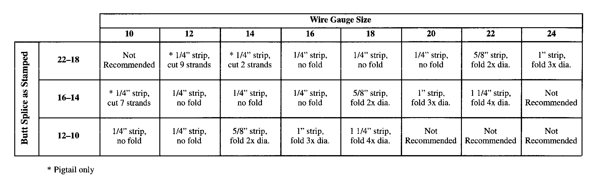 Recommended splicing method - Crimp (For 10-22 AWG Diameter Wire to Like Wire Diameter)