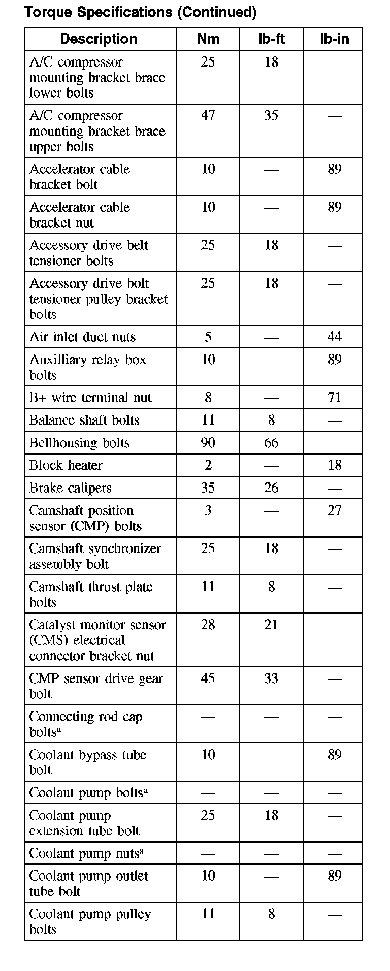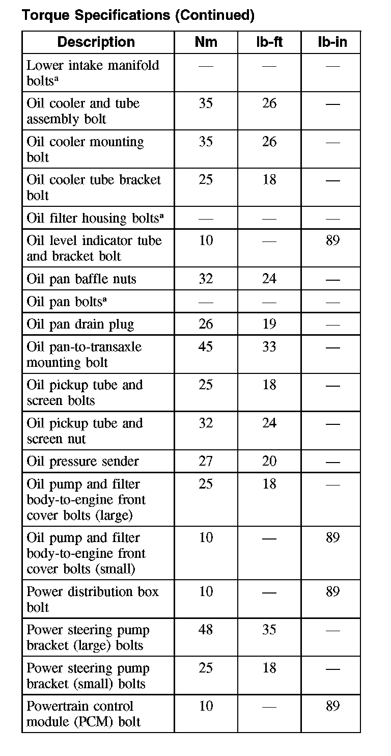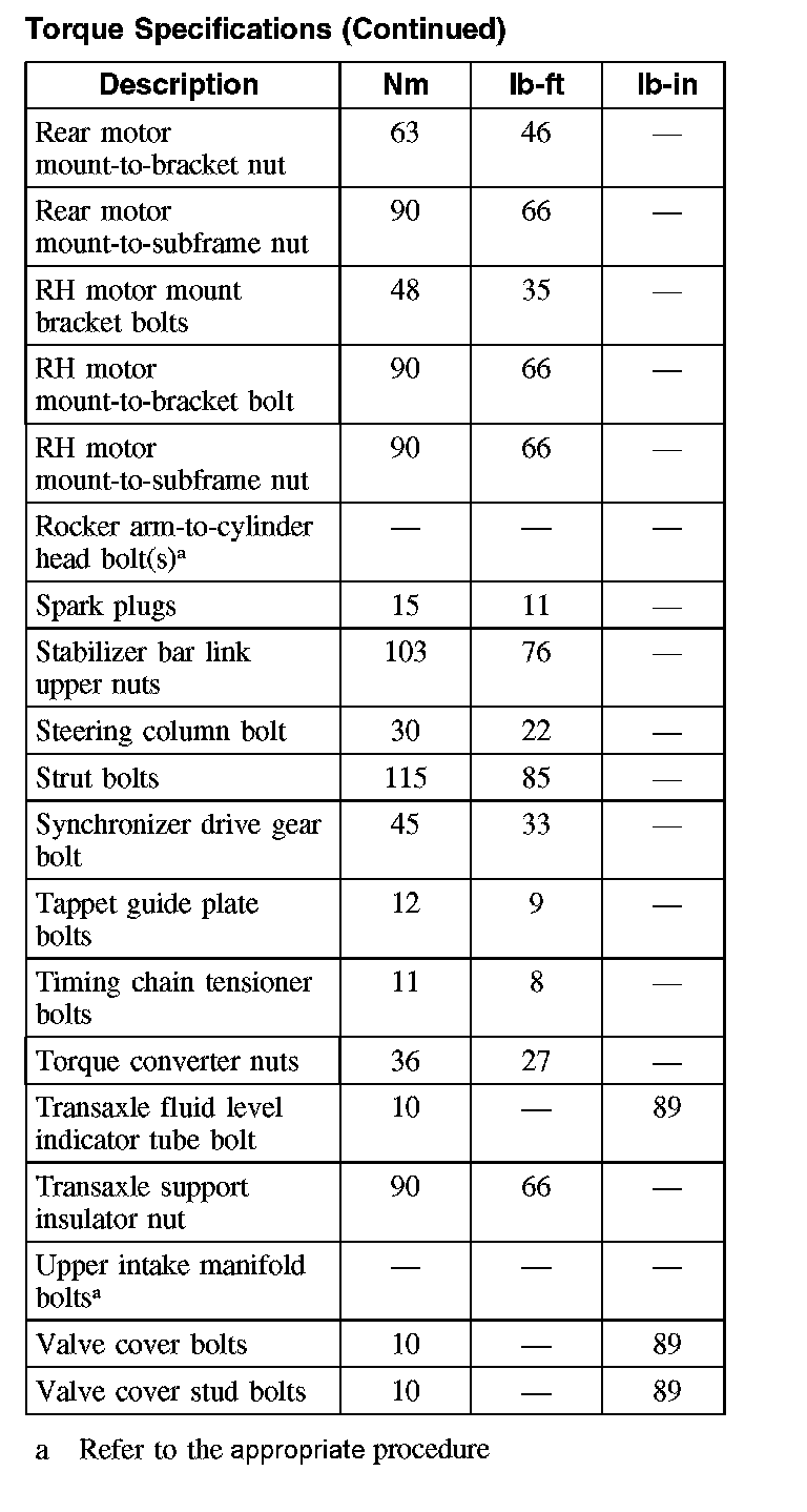 Torque Specifications (Part 2):