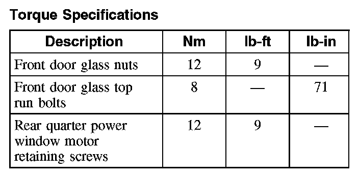 Torque Specifications: