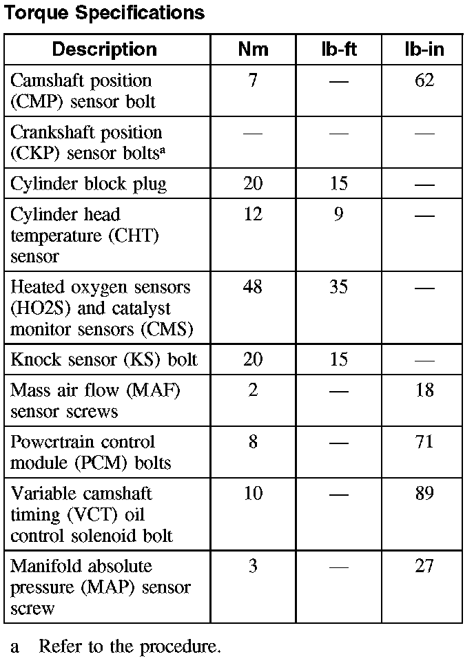 Torque Specifications: