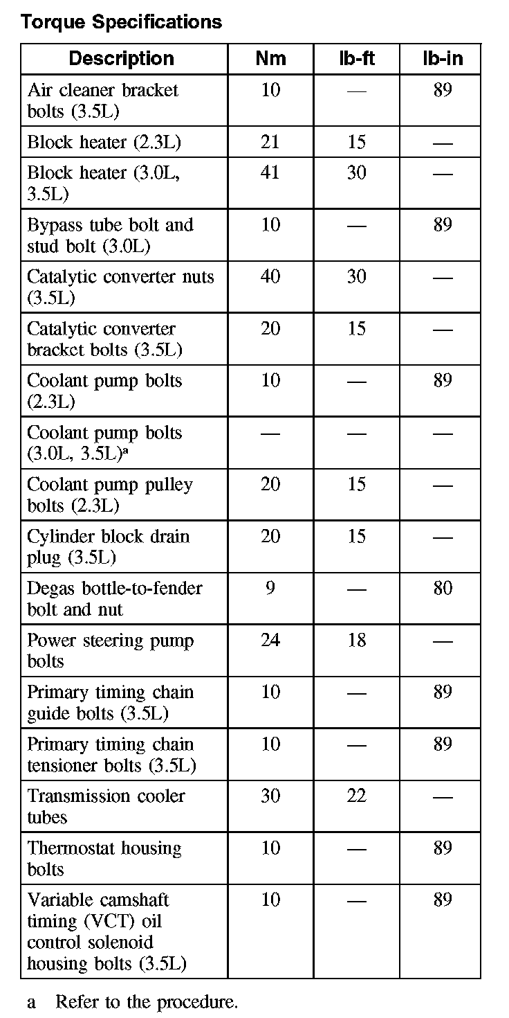 Torque Specifications