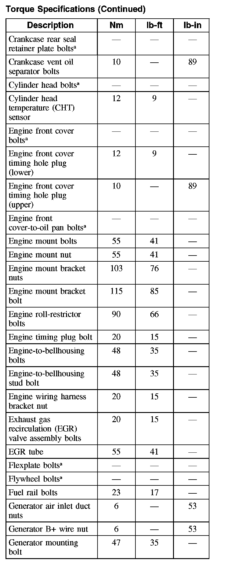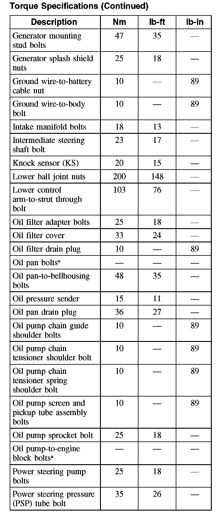 Torque SpecificationsTorque Specifications: